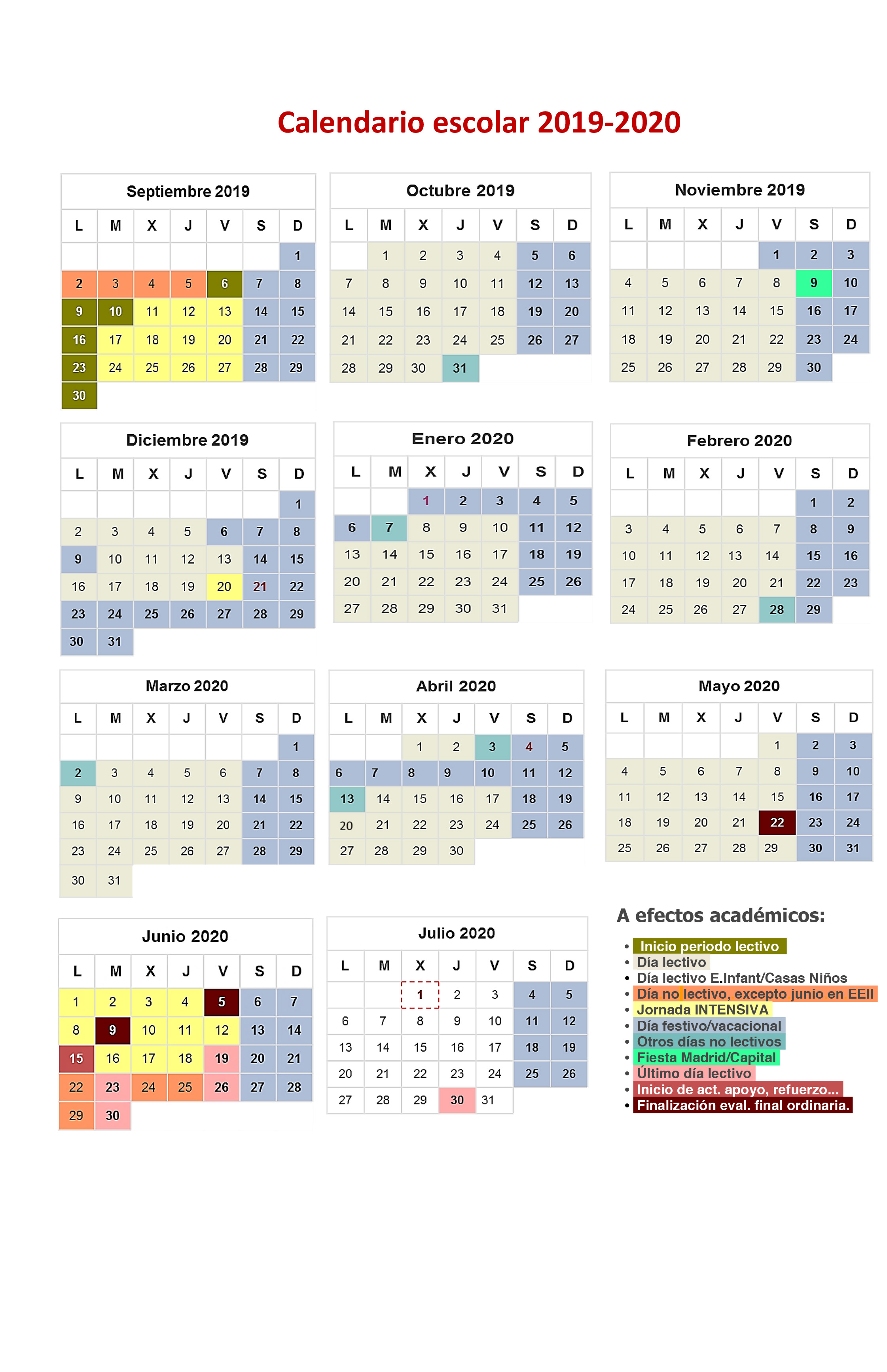 Calendario Escolar 2019-20 de la Comunidad de Madrid.