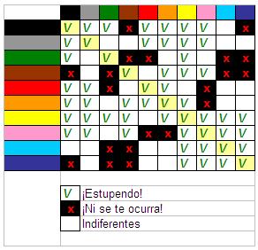 Para las personas que, como yo, no entendemos de colores y mucho menos de saber combinarlos, disponemos de tablas como estas que nos facilitan las cosas a la hora de preparar la cartelería en nuestro CEIP, IES, CEIPSO, CEPA, etc.